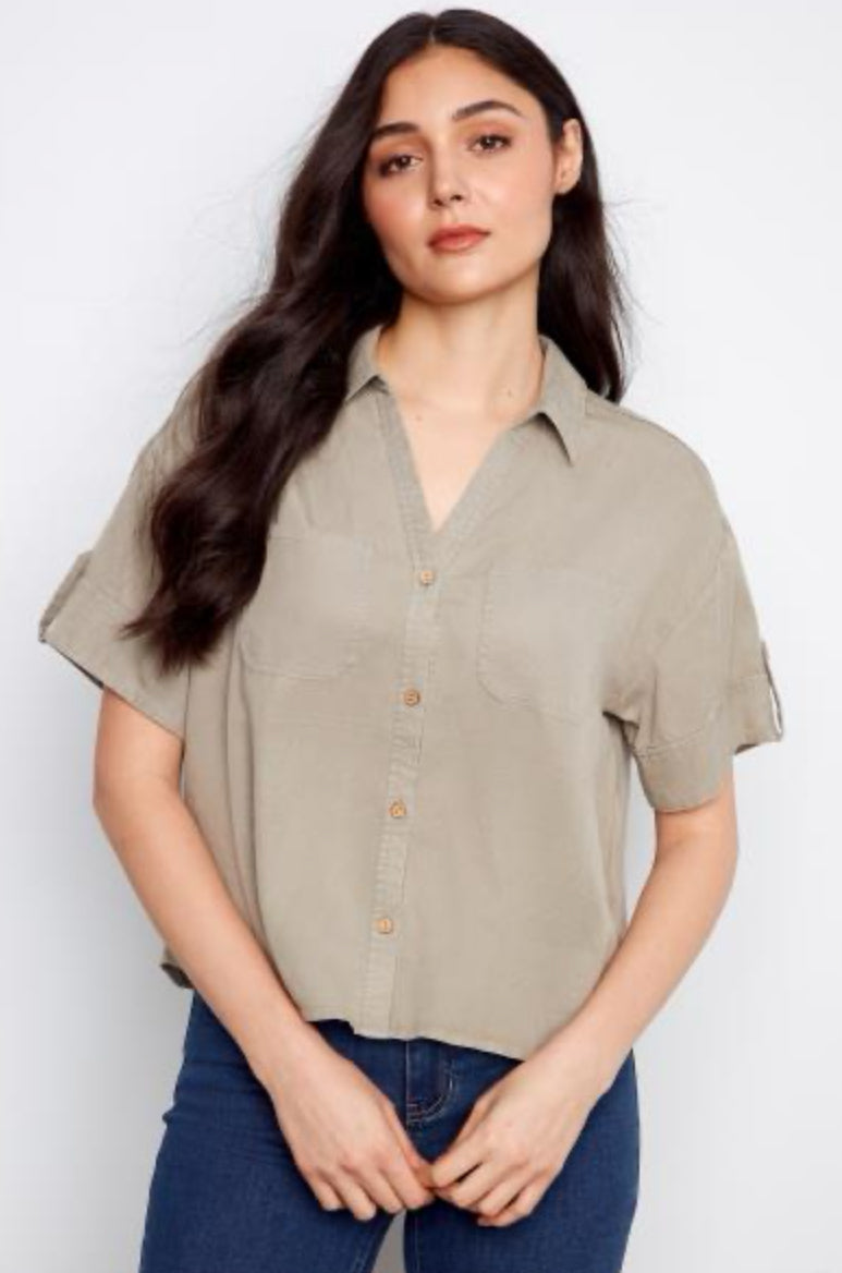 Short Sleeve Button Front Blouse W/Patch Pocket