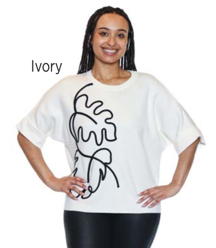 Multi Color 3/4 Sleeve Top W/Button Detail